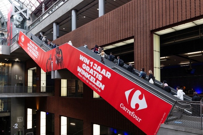 La visibilité de cettecampagne est maximisée grâce à une forte présence dans deux des plus grandesgares du pays. À Bruxelles-Midi, les passants sont plongés au cœur du FullWrapped Corridor, tandis qu'à Anvers-Central, ce sont les Elevator Walls XL etles Full Wrapped Escalators qui captent l'attention des passagers. Avec cetteoffensive visuelle et interactive, Carrefour et ses partenaires entendentoffrir aux Belges une expérience mémorable tout en montrant leur soutienfervent aux Diables Rouges dans leur quête de gloire européenne.