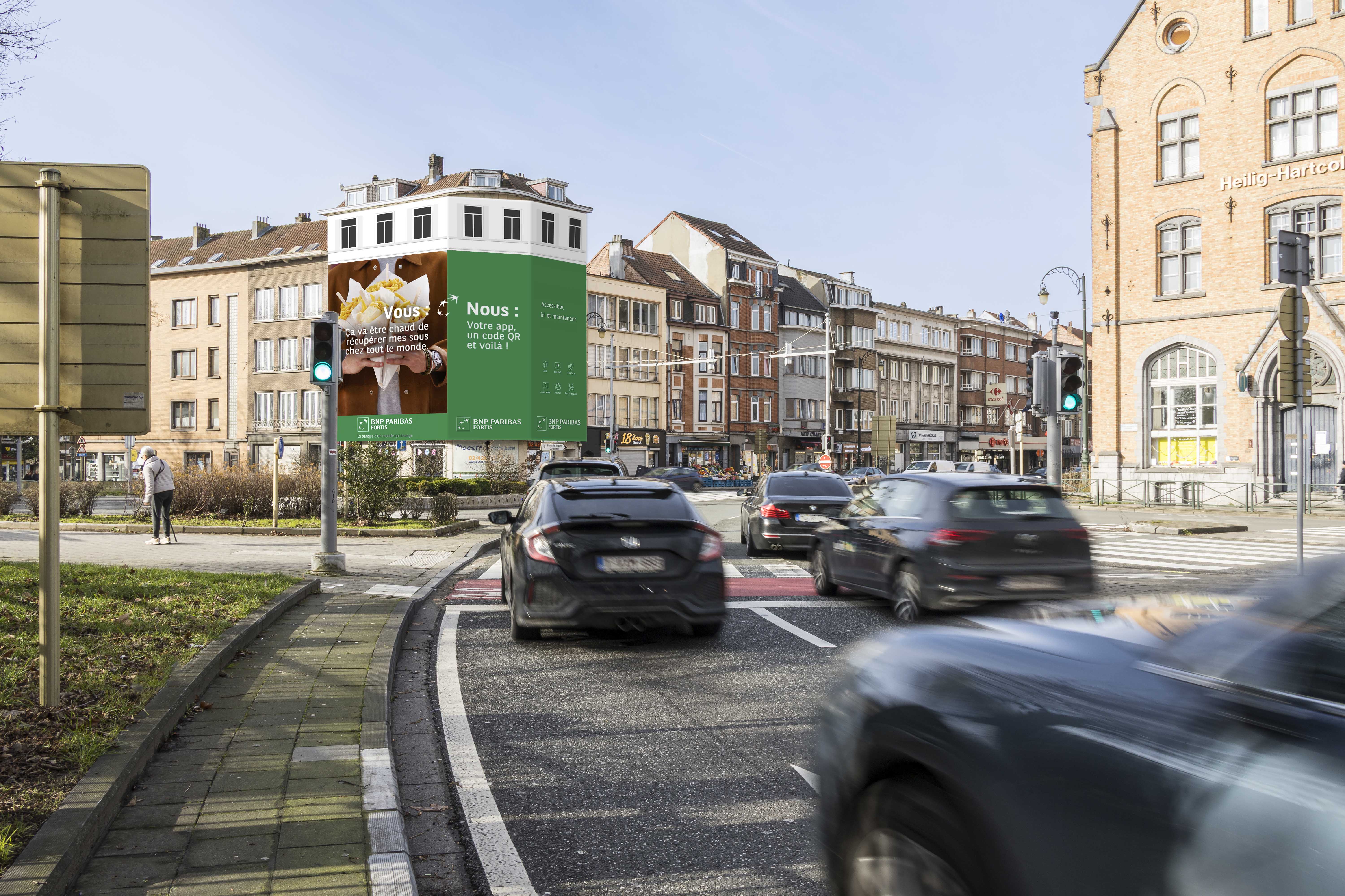 In Antwerp, the 100 m² banner at Leopold De Waelplaats enjoys a prime spot just steps from the Museum of Fine Arts (KMSKA), surrounded by bars, restaurants, cafés, and design and fashion shops. This location generates nearly one million impressions, ensuring strong visibility among a diverse and active audience.